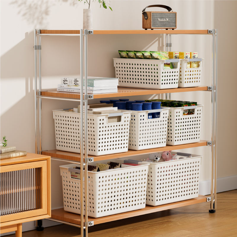 Dieses offene Regal vereint industrielle Metallrahmen mit natürlichen Holztönen und verleiht jedem Raum eine moderne Note und bietet gleichzeitig effiziente Aufbewahrung. Sein modulares Design ermöglicht eine flexible Anordnung und eignet sich daher ideal für den Einsatz in Wohnzimmern, Küchen oder Heimbüros, um Dekorationen auszustellen, Vorratsgegenstände aufzubewahren oder Arbeitsutensilien einfach zu organisieren